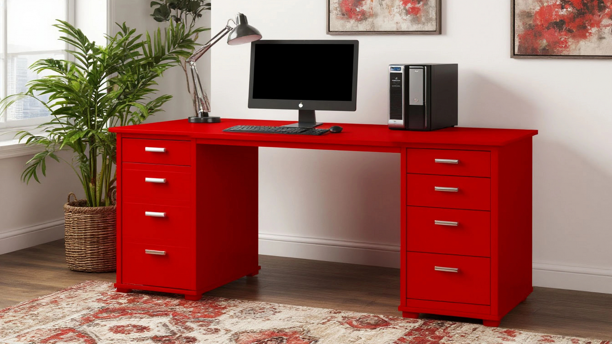 Компьютерный стол "Венера" в ярком красном цвете — это не просто элемент мебели, а настоящая находка для тех, кто ценит стиль, комфорт и функциональность в своем рабочем пространстве. Этот стол способен не только украсить ваш интерьер, но и создать атмосферу креативности и продуктивности. Яркий красный цвет придаст вашему офису или домашнему кабинету динамичность и энергию, что особенно важно для поддержания вдохновения во время работы или учебы. Он станет ярким акцентом в любом интерьере, привлекая внимание и создавая позитивное настроение.