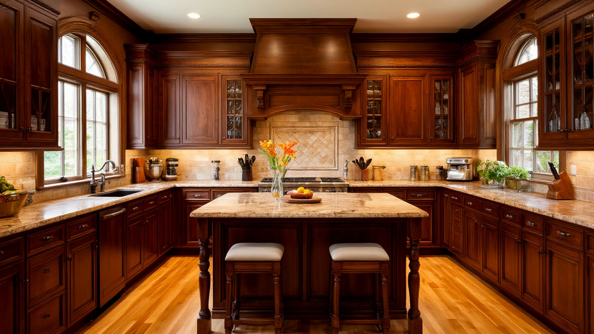 Цветовая гамма кухни играет важную роль. Глубокий ореховый или шоколадный оттенок дерева подчёркивает атмосферу уюта, а светлые акценты — стены, текстиль, мраморная плитка — создают баланс и визуальное пространство. Кухня "Бруксби" подстраивается под любое настроение: днём она кажется солнечной и светлой, вечером — камерной и тёплой. Это интерьер, который не устаревает, а раскрывается со временем, как хорошее вино.
