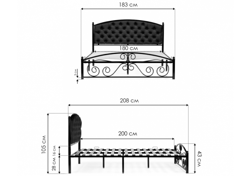 Длина кровати: 208 см.