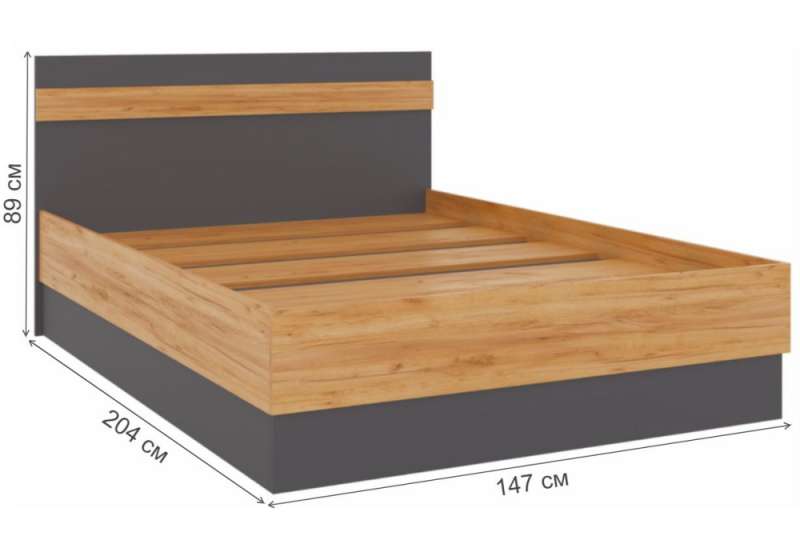 Кровать Кассандра 140х200 дуб крафт золотой / антрацит ().
