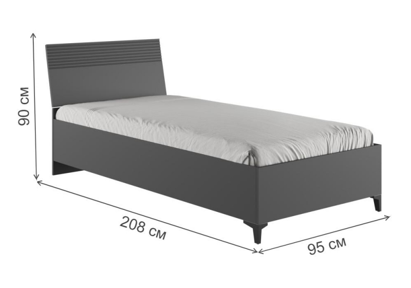 Кровать Ника 90х200 с основанием дсп эйхория QR-17 / графит (95x90).