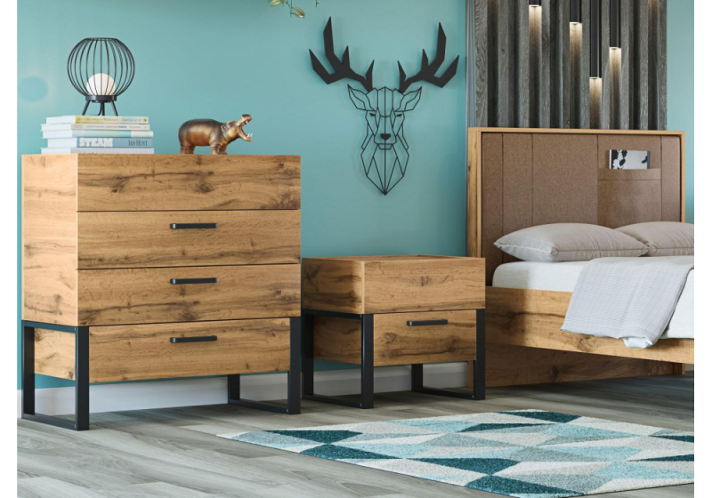 Тумба прикроватная Iris металл дуб вотан / черный муар (51x46x53)