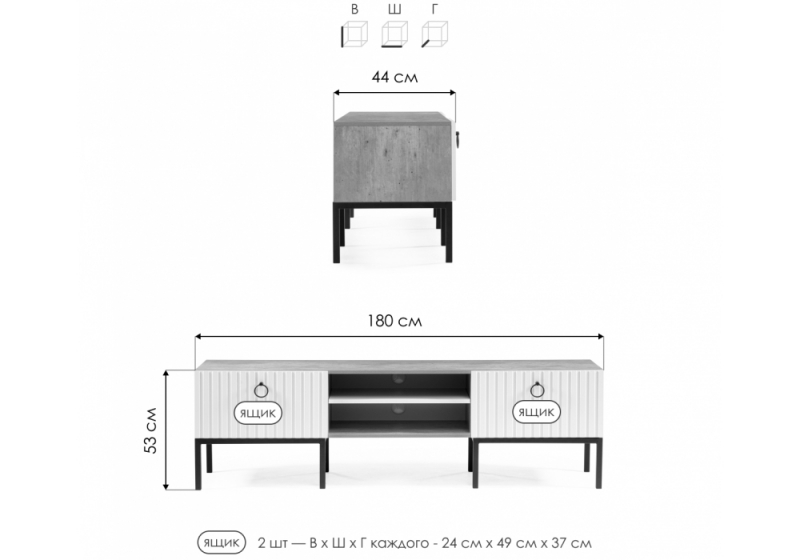 ТВ-тумба Tulip метрополитан грэй (180x44x53).