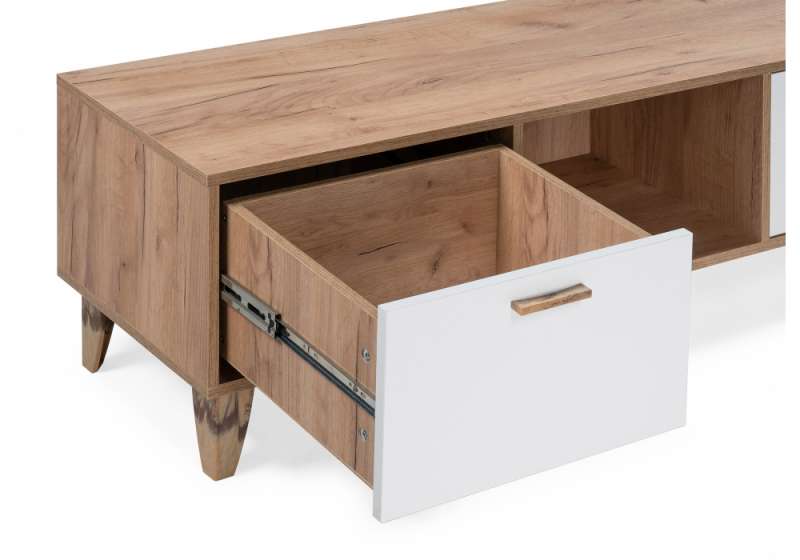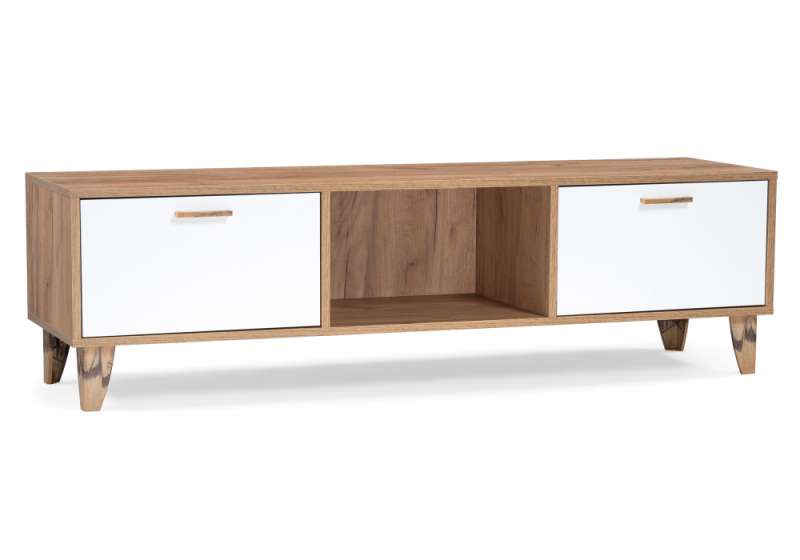 ТВ-тумбы Эго Т-3 на ножках дуб крафт золотой / белый глянец (145x40,4x41,6)