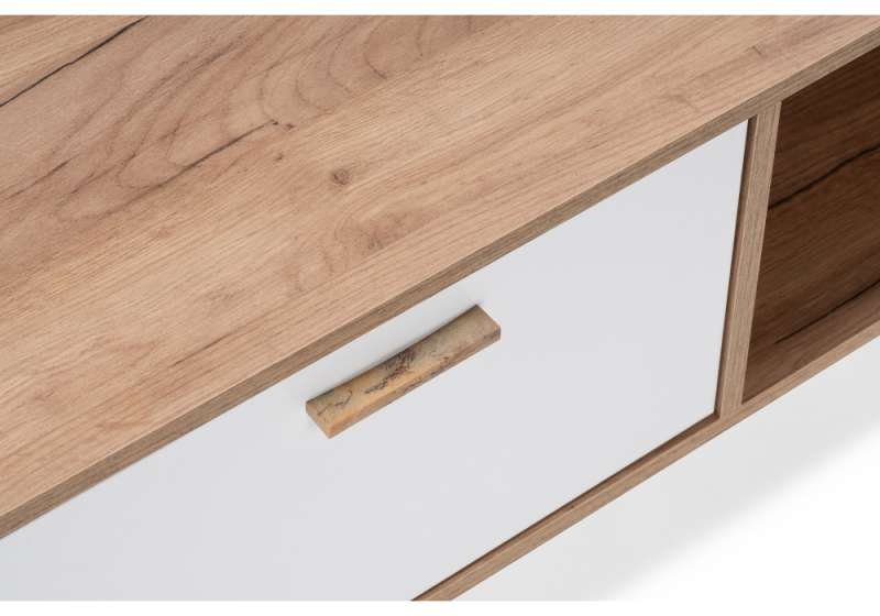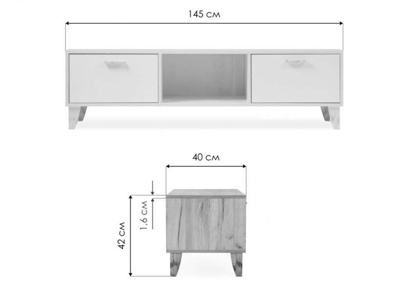 ТВ-тумбы Эго Т-3 на ножках дуб крафт золотой / белый глянец (145x40,4x41,6).