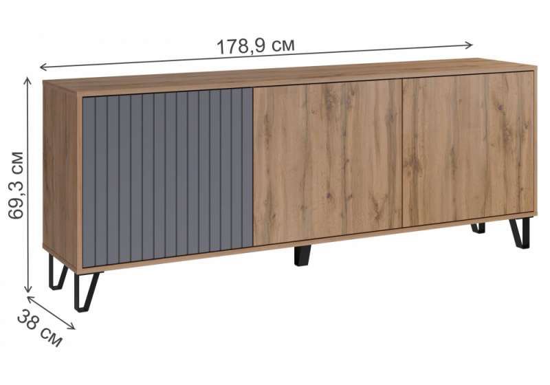 ТВ-тумбы Эннис дуб вотан / графит софт (178,9x38x69,3).