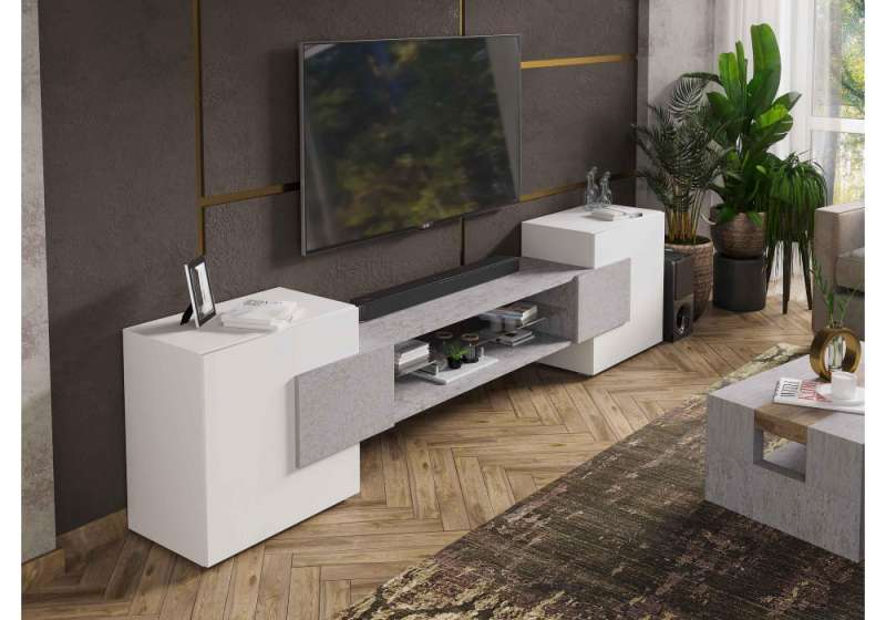 ТВ-тумба Лисмор белый / бетон светлый (254x39x62).