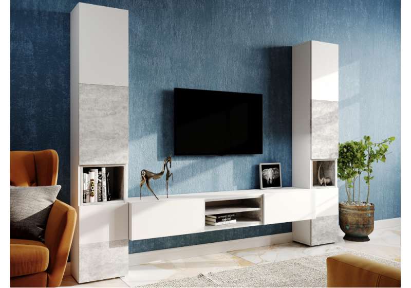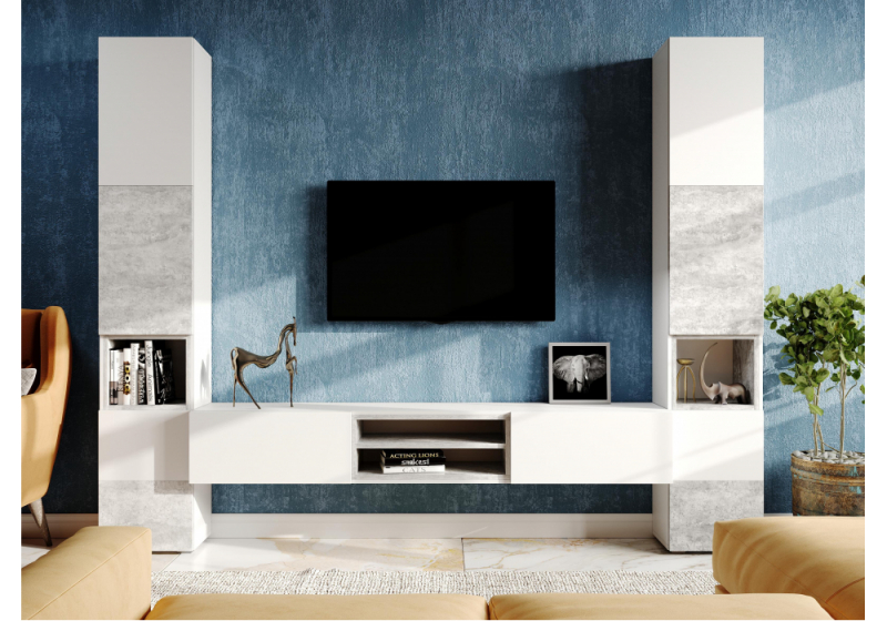 ТВ-тумба Лонгфорд белый / бетон светлый (200x37x30).