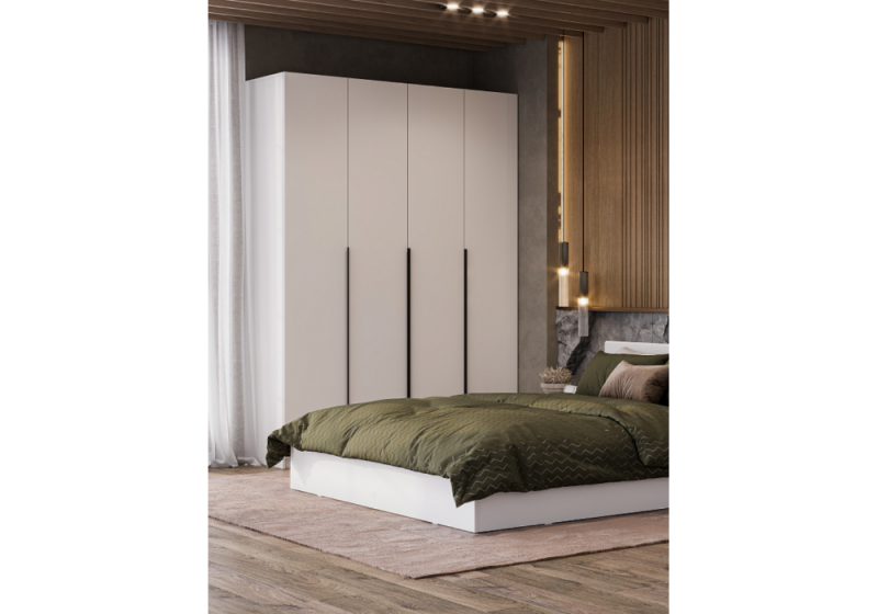 Шкаф Даиго четырехстворчатый белый текстурный (160,1x50,6x221,6).