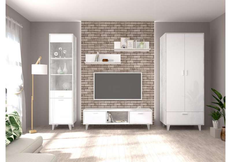 Шкафы Эго ПС-1 на ножках бетон светлый / белый глянец (50x40,8x201,9).