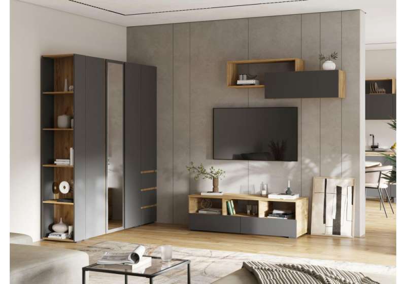 Шкафы Элла ПЛ 01 серый графит / дуб крафт золото (140,2x33x47,2).