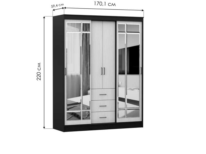 Шкафы Луара дуб венге / ясень анкор светлый (170,1x59,4x220)
