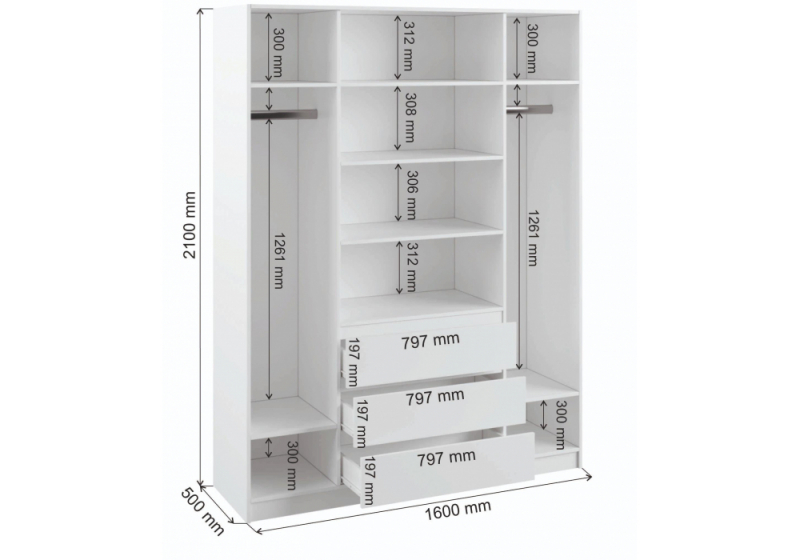 Шкаф Мадера ЛДСП белый (160x50x210)