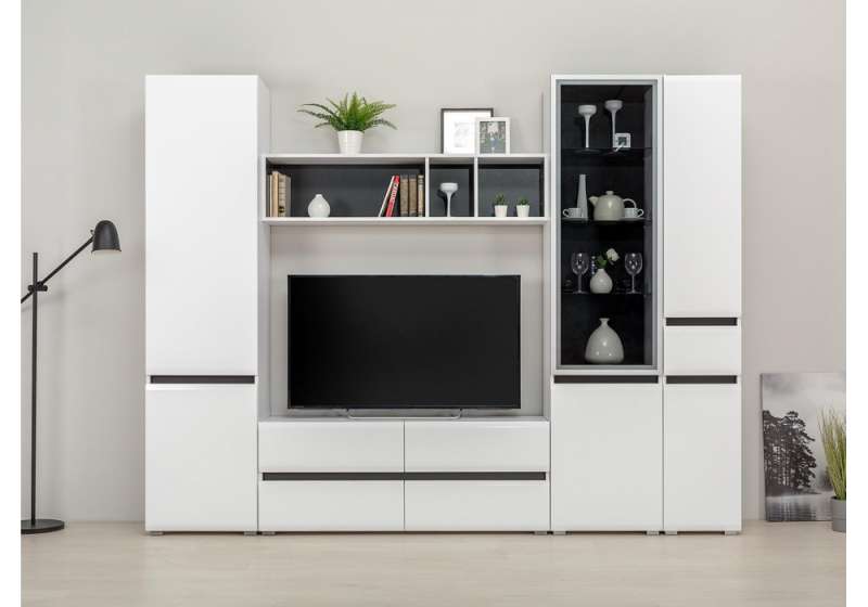 Шкафы Сейдиль с ящиком белый премиум / черный / белый глянец (35x41,3x205,2)