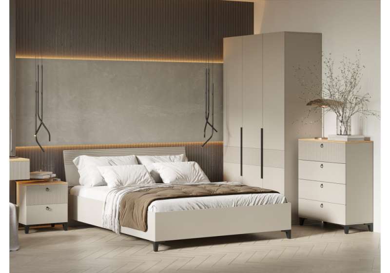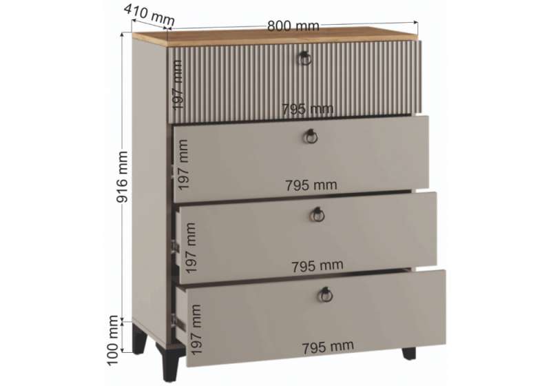Комод Ника 4Я ПВШ бежевый мат-05 / кашемир / дуб делано (80x41x101,6)