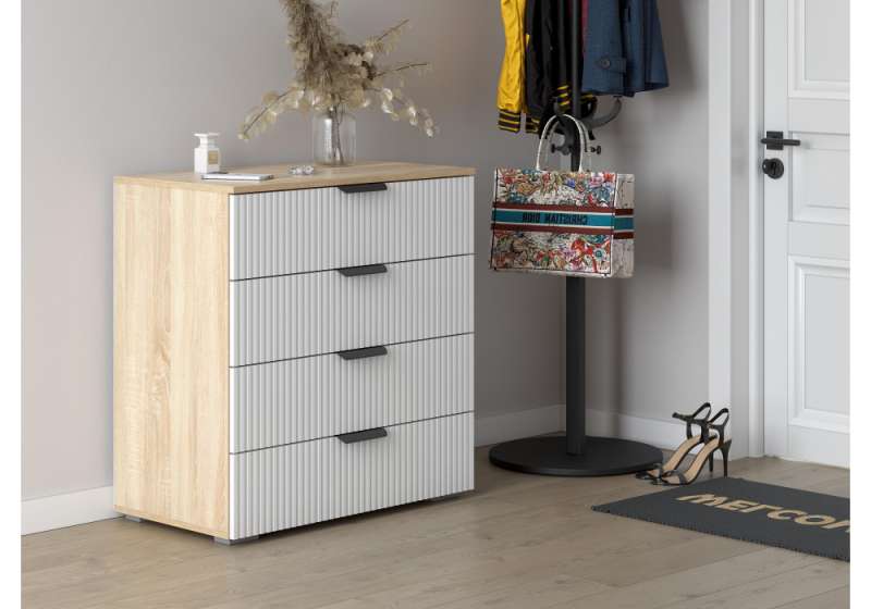 Комод Стокгольм КМ03-800 дуб сонома / line софт пломбир (80x45,4x83,8)