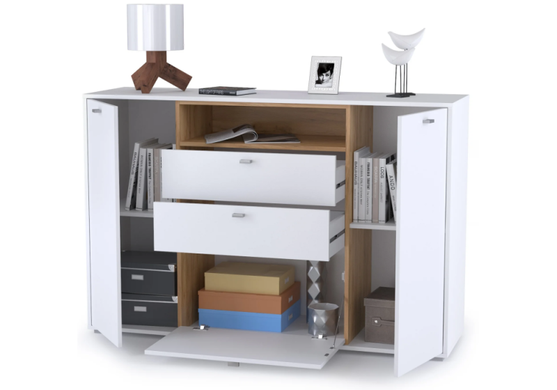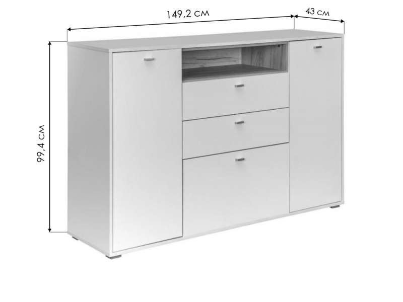 Комод Бэль 10.95 белый премиум / дуб золотой craft (149,2x43x99,4).