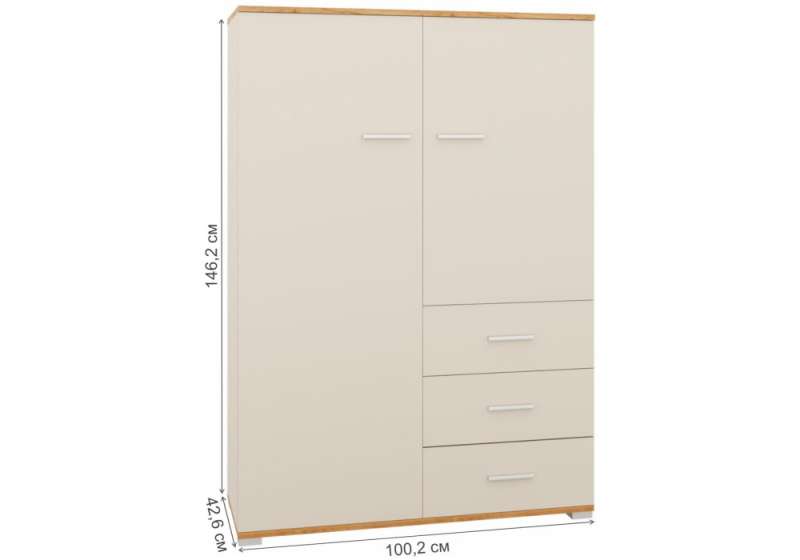 Комод Кассандра 100 дуб крафт золотой / кашемир (100,2x42,6x146,2).