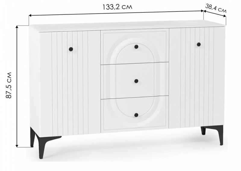 Комод Вестра 13.309 белый pe шагрень / белая шагрень (133,2x38,4x87,5).