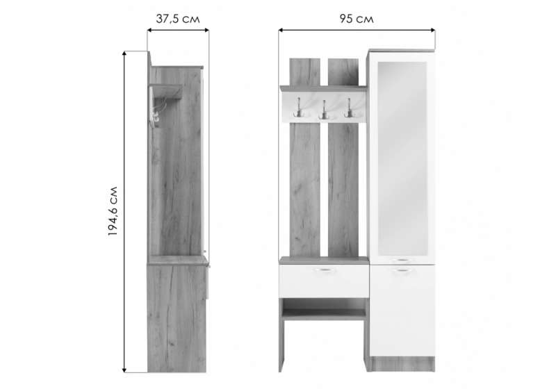 Прихожая Иннэс-3 бетон светлый / белый глянец