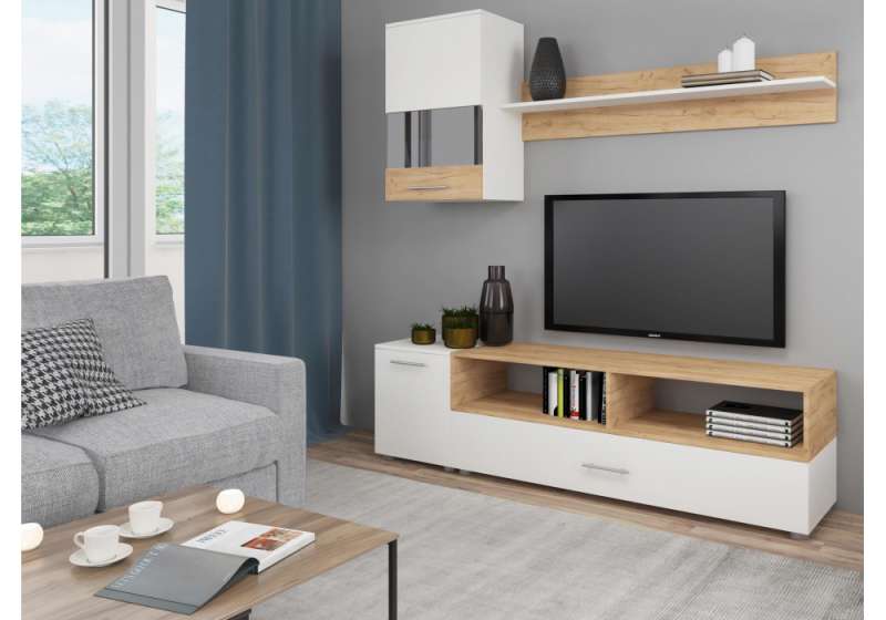 Готовые гостиные Алонсо белая / дуб золотой (180x39x124).