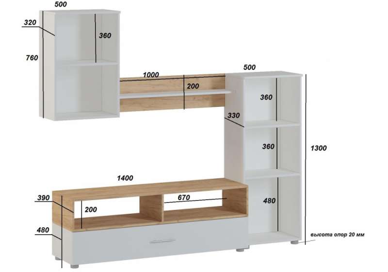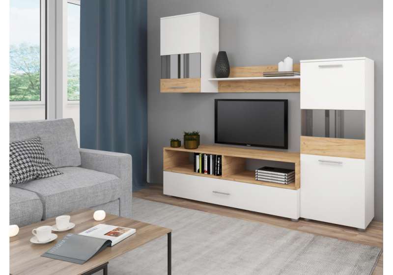 Готовые гостиные Алваро белая / дуб золотой (200x39x186).