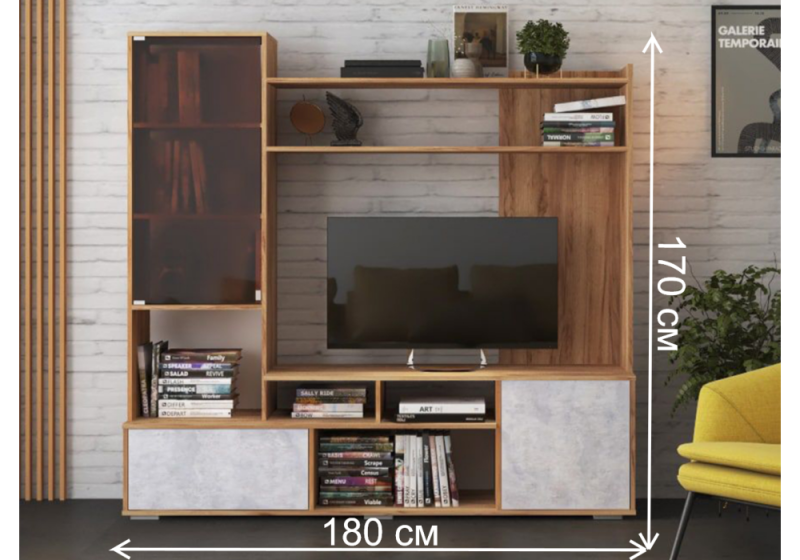 Готовые гостиные Брия дуб крафт золотой / цемент светлый (180x43x170).