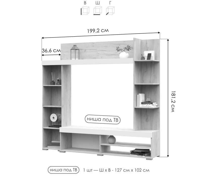 Готовые гостиные Касэль софт вайт / дуб крафт белый (199,2x36,6x181,2).