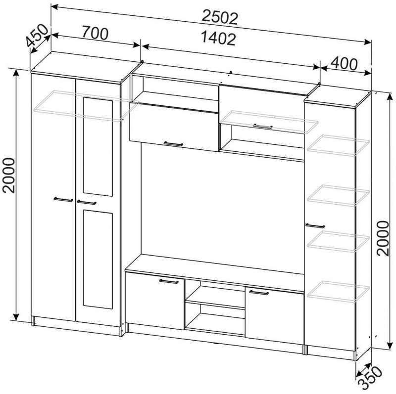 Готовые гостиные Lucius дуб сонома / белый (250,2x45x200).