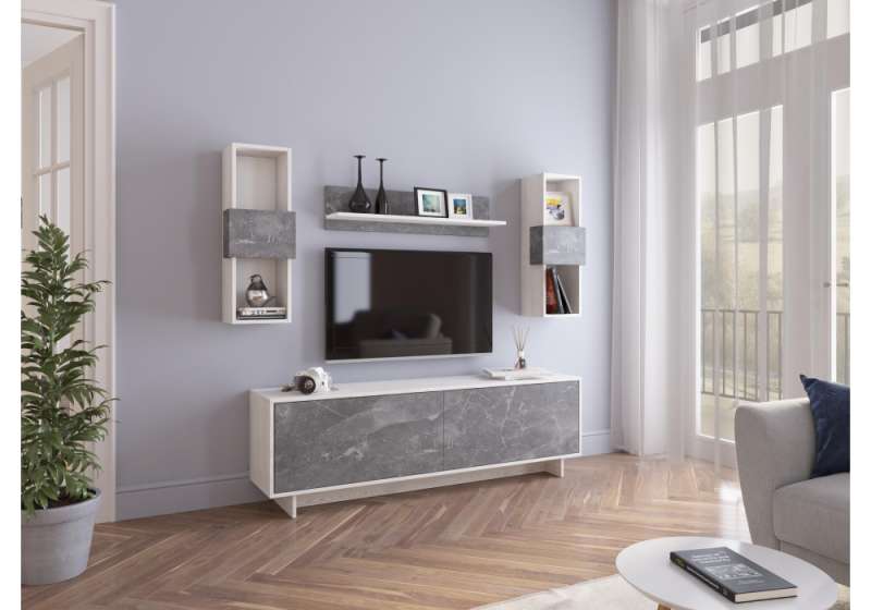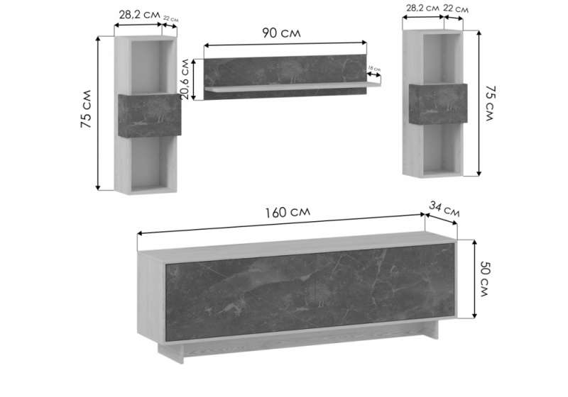 Готовые гостиные Огюст Мини сосна белая лофт / каспий темный (200x34x).