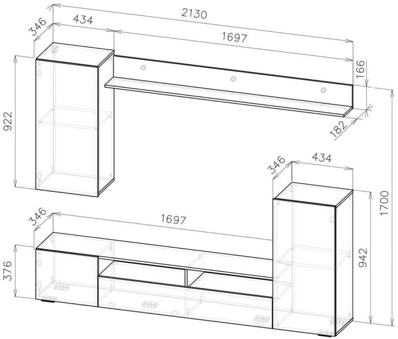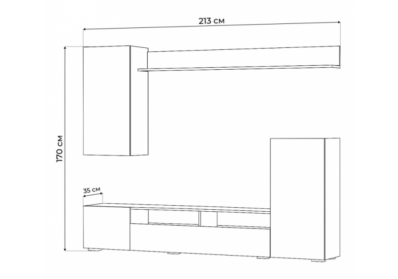 Готовая гостиная Oluwande белый / белый глянец (213x34,6x170).