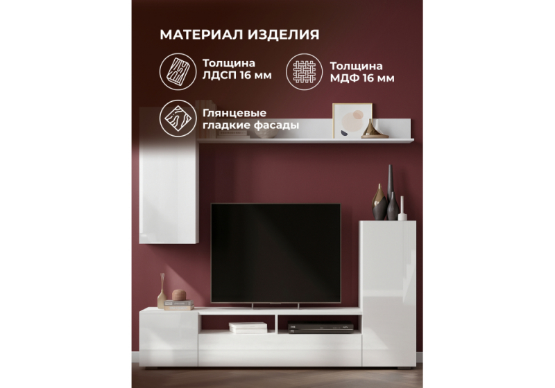 Готовая гостиная Oluwande белый / белый глянец (213x34,6x170)
