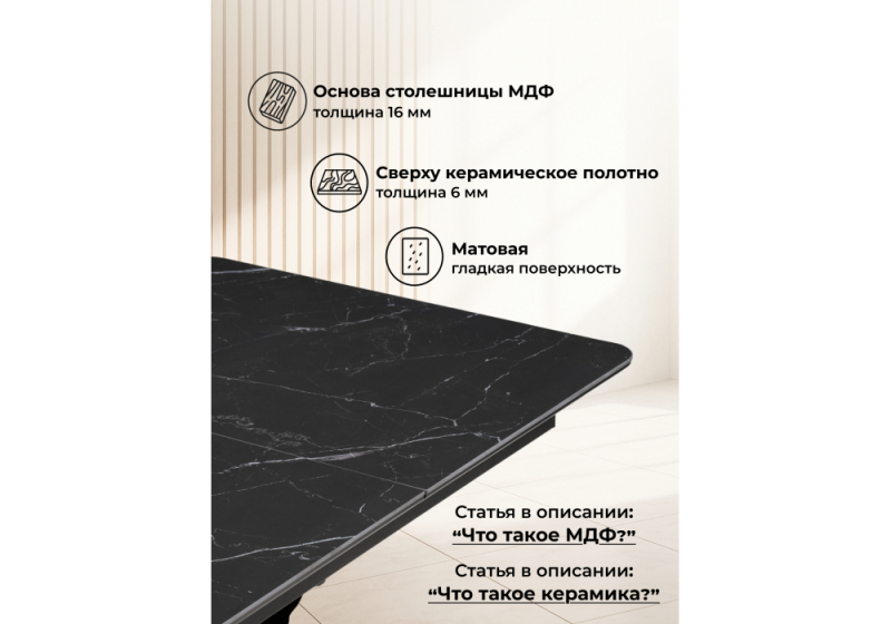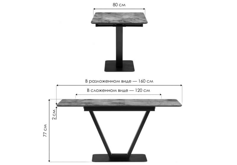 Керамический стол Бугун 120(160)х80х77 черный мрамор / черный (80x77).