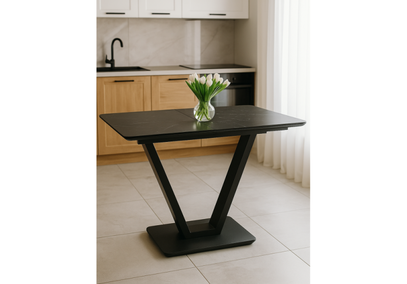 Керамический стол Бугун 120(160)х80х77 черный мрамор / черный (80x77)