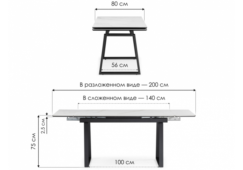 Керамический стол Джек 140(200)х80 серый мрамор larka grey / черный (80x75).