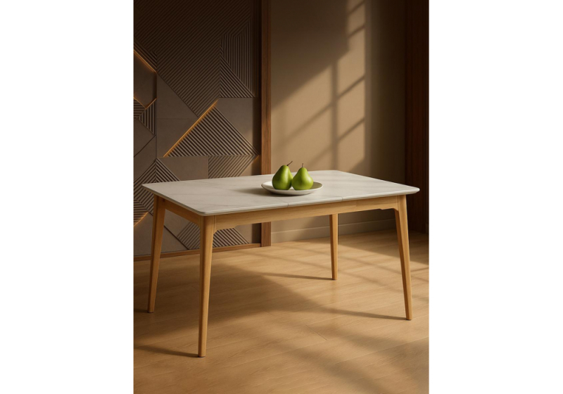 Керамический стол Halmar 140(180)x80 белый спеченный камень / светлое дерево (80x77,5)
