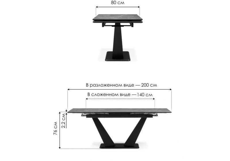 Керамический стол Кели 140(200)х80х76 белый / черный (80x76).