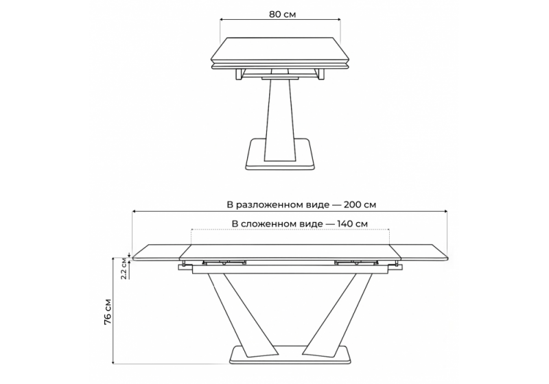 Длина стола в разложенном виде: 200 см.