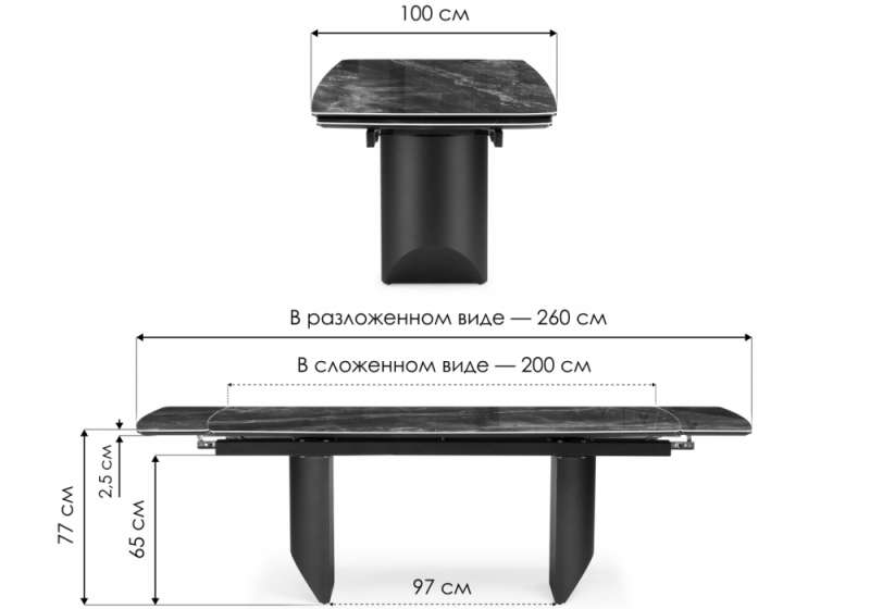 Керамический стол Маре 200(260)х100х77 neodom titanium lawa nero / черный (100x77).