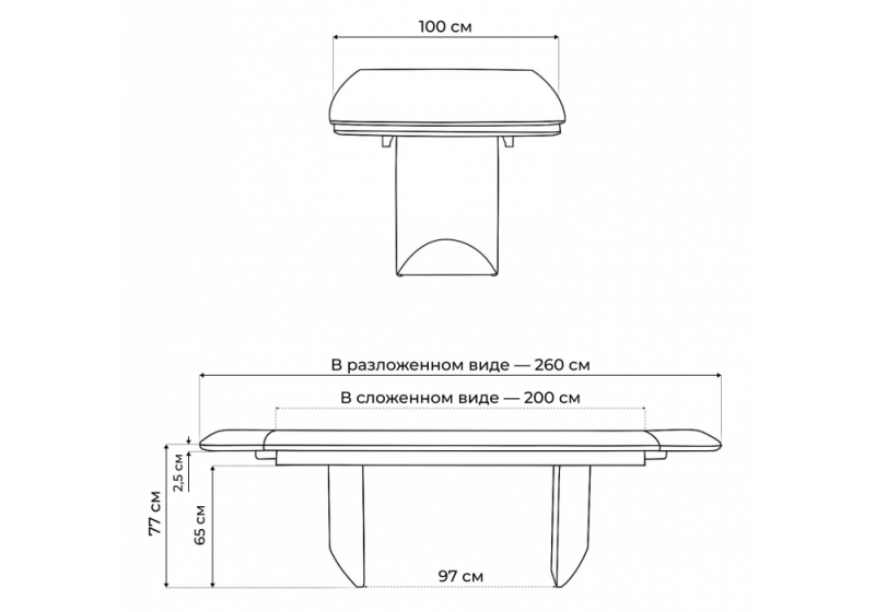 Расстояние между ножками: 97 см. Толщина столешницы: 2,5 см.