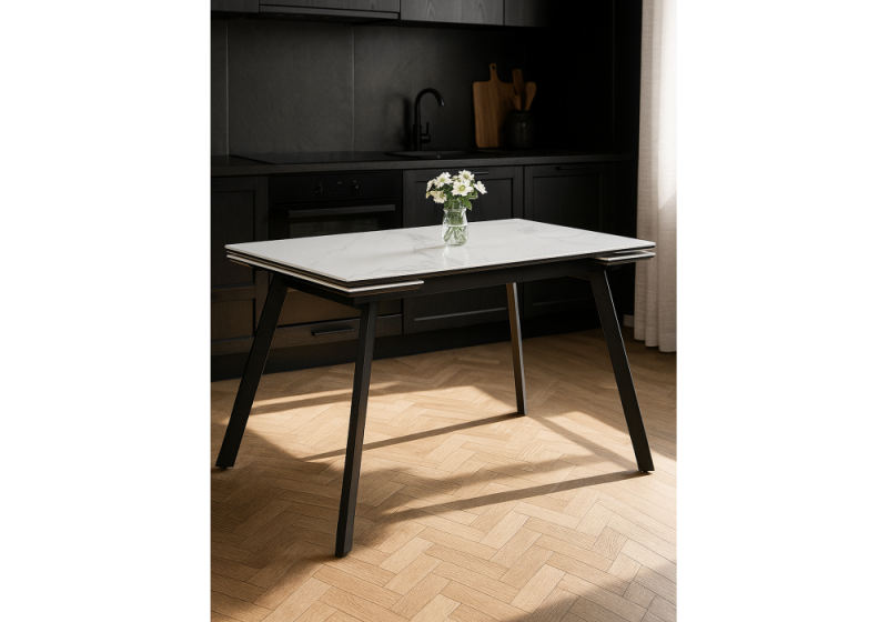 Керамический стол Норман 140(200)х80х75 белый мрамор alpin white / черный (80x75).