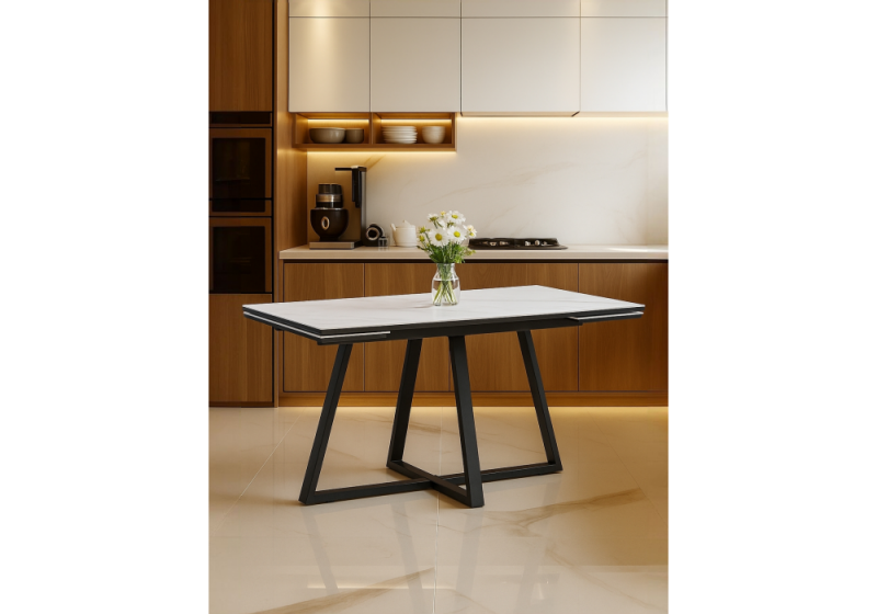 Керамический стол Памелла 120(180)х80 snow alpin / черный (80x75)