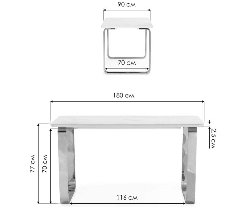 Расстояние между ножками: 156 х 68,5 см Толщина столешницы: 2,6 см Высота до подстолья - 70 см. Ножки - 8х2,5 см