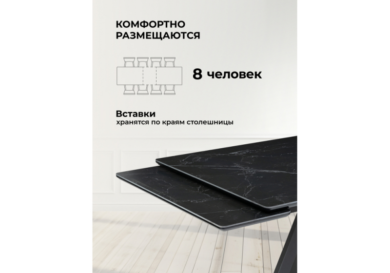 Керамический стол Вилли 140(200)х80х75 черный мрамор shakespeare black / черный (80x75)