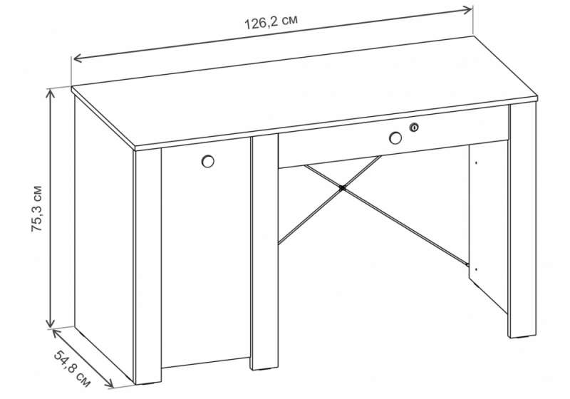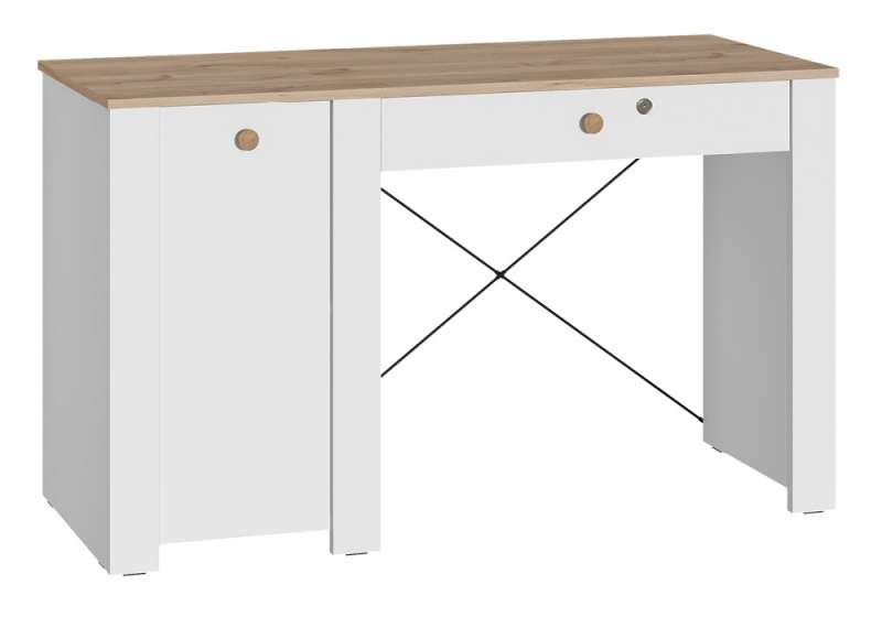 Компьютерный стол Джастин 12.154 126,2х54,8х75,3 белый шагрень / дуб белый (126,2x54,8x75,3)