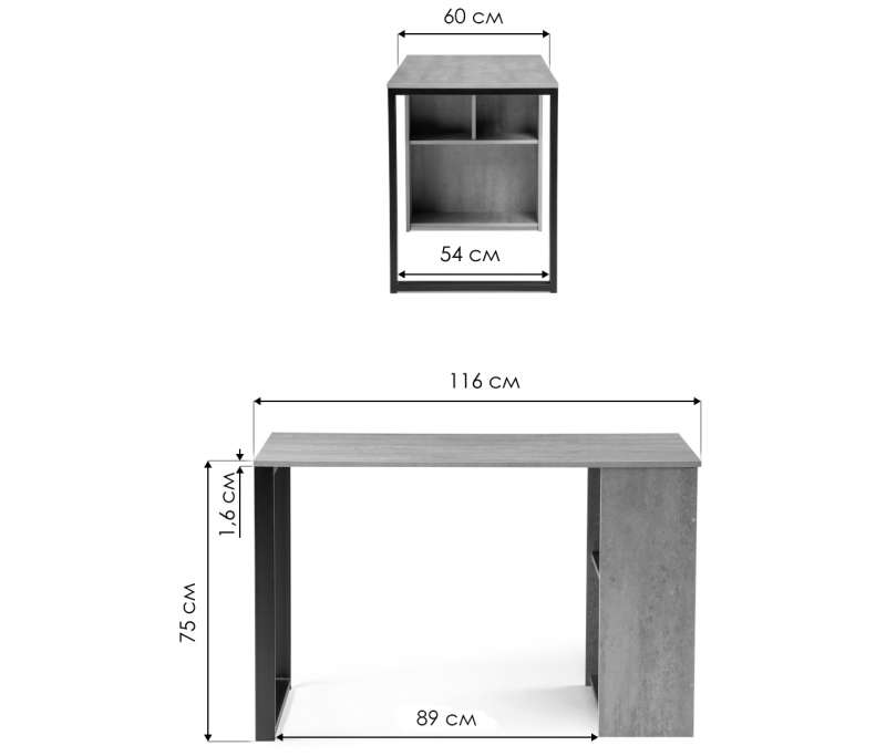 Офисная мебель Битти Лофт 116х60х75 дуб вотан / черный матовый (60x75).