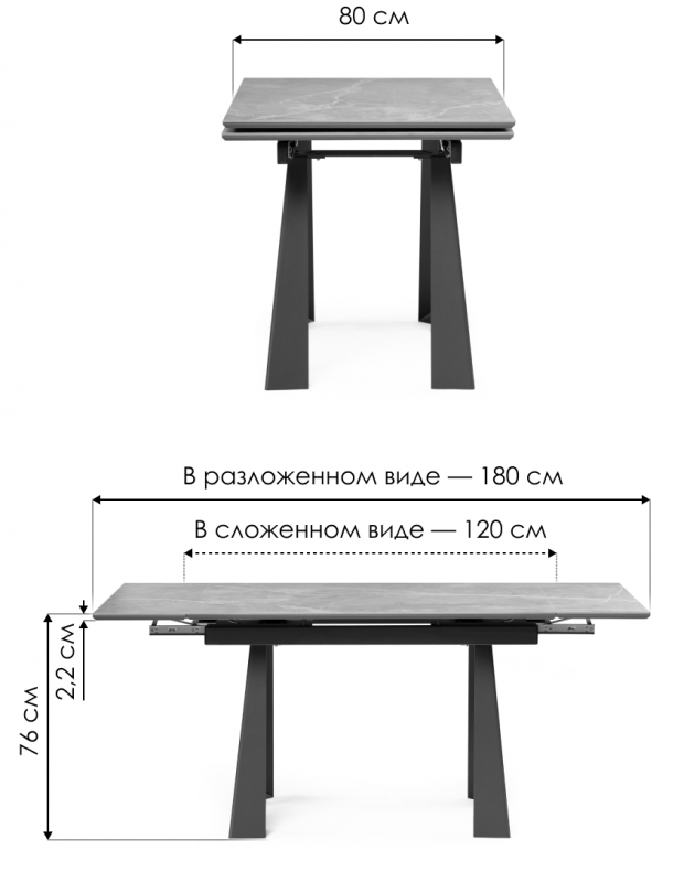 Обеденный стол Бэйнбрук 120х80х76 серый мрамор / графит (80x76).