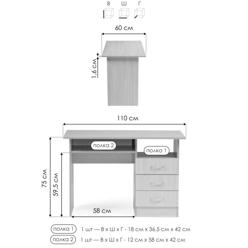 Компьютерный стол Бриз 110х60х75 ЛДСП ясень светлый (60x75).