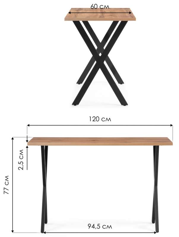 Стол деревянный Алеста Лофт 120х60х77 25 мм дуб вотан / черный матовый (60x77).