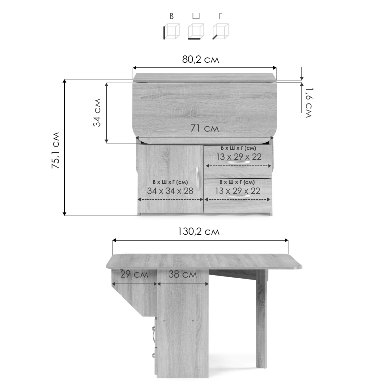 Стол деревянный Стол-тумба 130,2х80,2х75,1 дуб сонома (80,2x75,1)